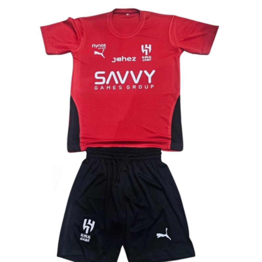 - شعار الهلال: يحمل الطقم شعار نادي الهلال الأيقوني، مما يغرس روح الانتماء والفخر بالفريق في قلب طفلك.